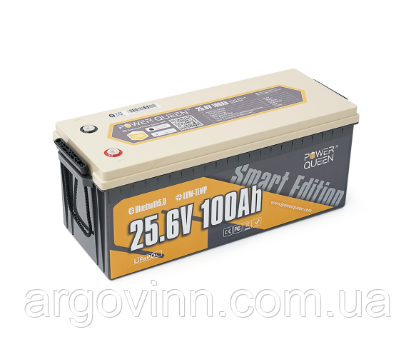 Акумуляторна батарея LiFePO4 Power Queen 25.6V 100Ah BT, 2560Wh, BMS 100A, 532*207*215мм
